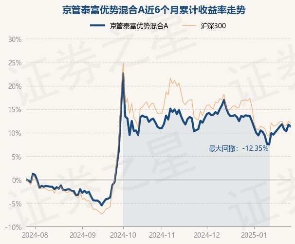 你的位置:2号站娱乐qv382223 > 新闻动态 > 1月27日基金净值:京管泰富优势混合A最新净值1.0213,跌0.32%本站消息,1月27日,京管泰富优势混合A最新单位净值为1.0213元,累计净值为1.0313元,较前一交易日下跌0.32%。历史数据显示该基金近1个月下跌2.0%,近3个月下跌1.25%,近6个月上涨11.34%,近1年上涨6.24%。该基金近6个月的累计收益率走势如下图: